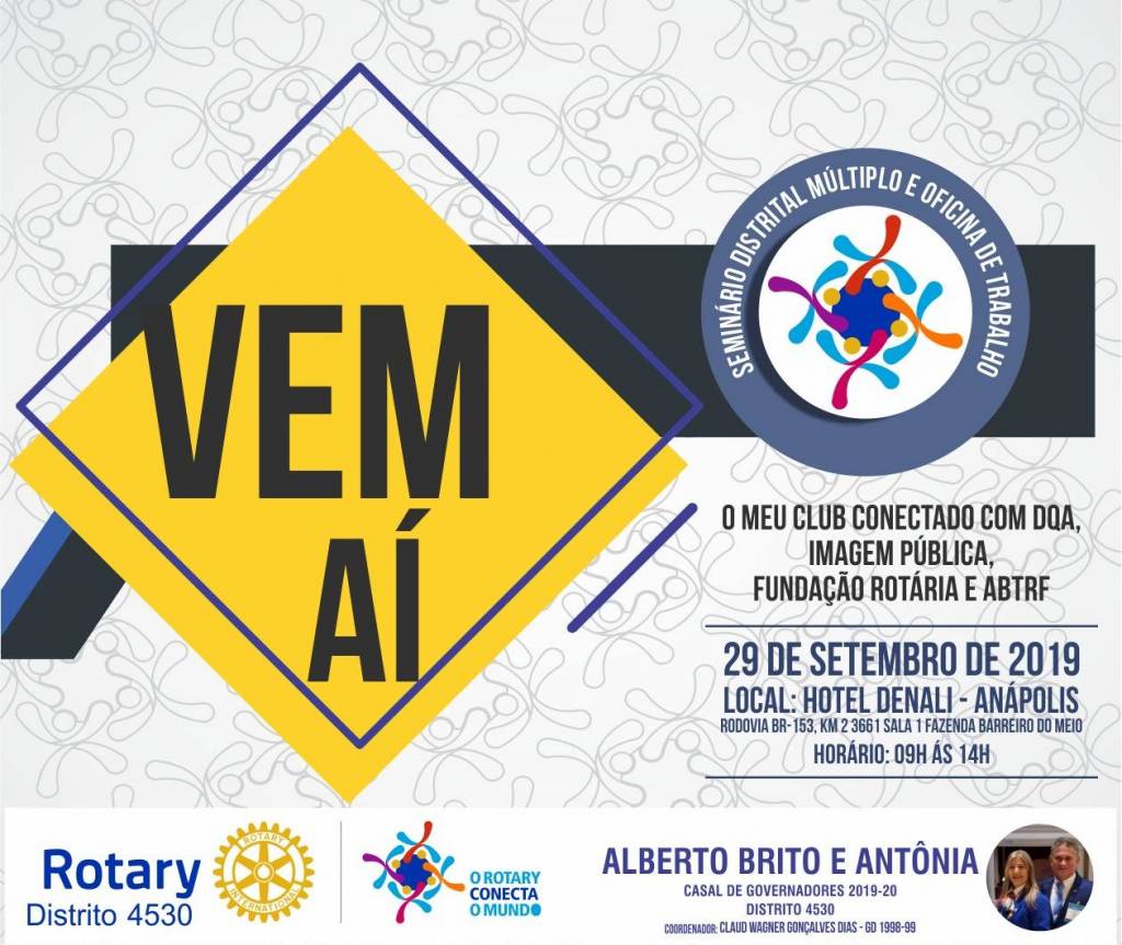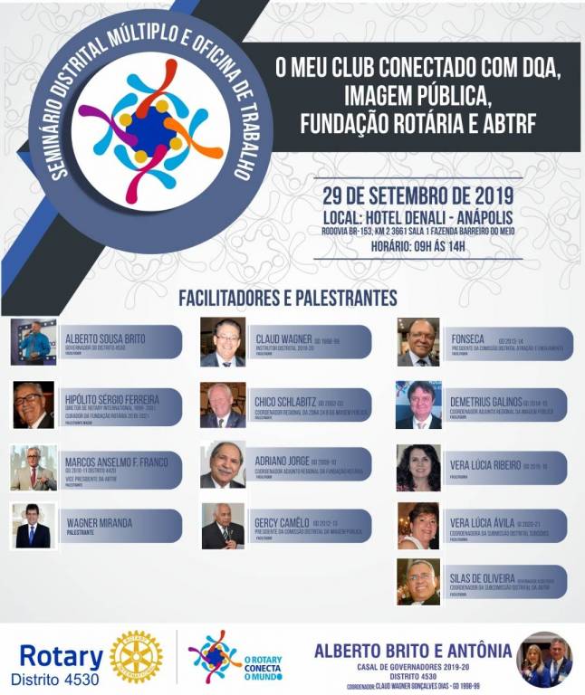 Ressaltamos que este Seminário estará aberto a todos os Rotary Clubs, Rotarianos, Rotaractianos e Interactianos do Distrito.