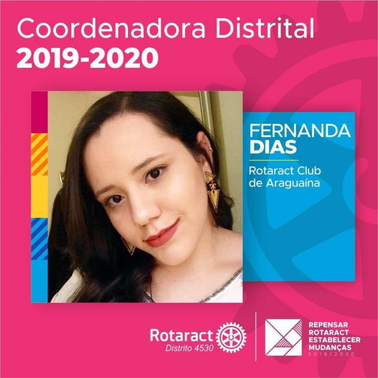 Associado ao Rotaract Club de Araguaína, 28 anos, bacharel em Direito, é Diretora de Projetos Humanitários 2019-2020 do Rotaract Club de Araguaína.