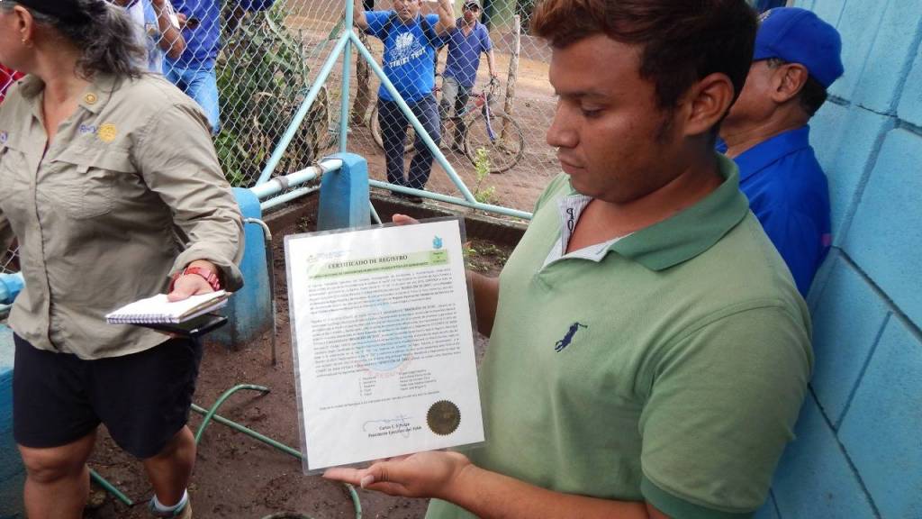 (Brasília – DF, Brasil) (23-09-2019) — No município Villa El Carmen, a 70 Km de Manágua, o Rotary Club de Managua (D4240) em parceria com o Rotary Club of Ormond Beach, Florida, EUA (D6970), realizaram um projeto de 600 mil dólares para garantir o fornecimento de água potável para 4 vilarejos, dentre eles os de San Diego e La California. Foram construídos poços profundos, sistema de potabilização, caixas d´agua municipais, sistema de bombeamento, rede de distribuição, macromeditores e medidores para aproximadamente 800 famílias, além de capacitação da comunidade para o monitoramento da qualidade da água e gestão dos sistemas por meio dos Comitês de Água Potável e Saneamento (CAPS). Cada comunidade, de acordo com a legislação dos CAPS na Nicarágua, é responsável pela manutenção da rede e pela cobrança do que corresponde ao custeio da operação, especificamente a energia do bombeamento e a manutenção da rede, algo equivalente a aproximadamente a 1,50 a 2 dólares por mês.