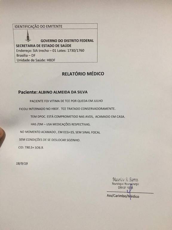 Ontem, o presidente Raul Borges e o Cp Gilberto Haraguchi foram até a residência do Sr. Albino e realizaram a entrega de uma cadeira de Rodas, morador da QNG o Senhor Albino encontra-se acamado após uma queda, tem muitas dificuldades para locomoção. Já com 90 anos ele precisa de ajuda da sua esposa para se locomover.