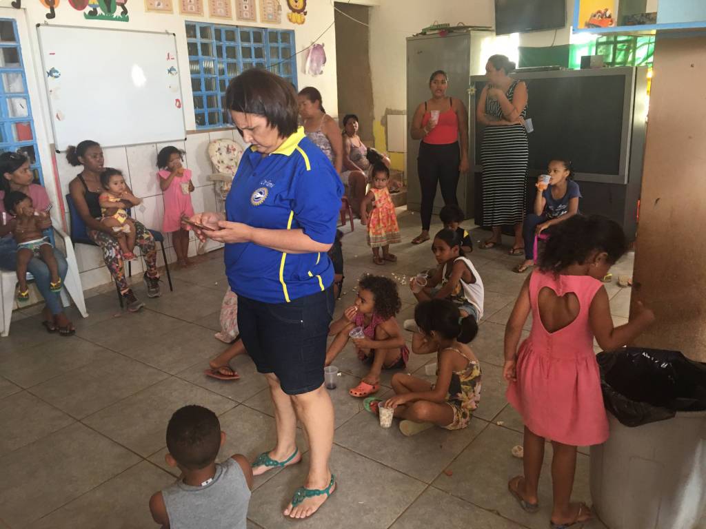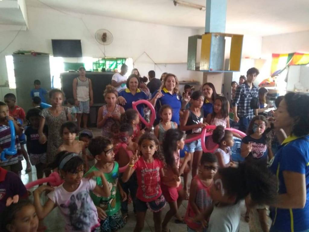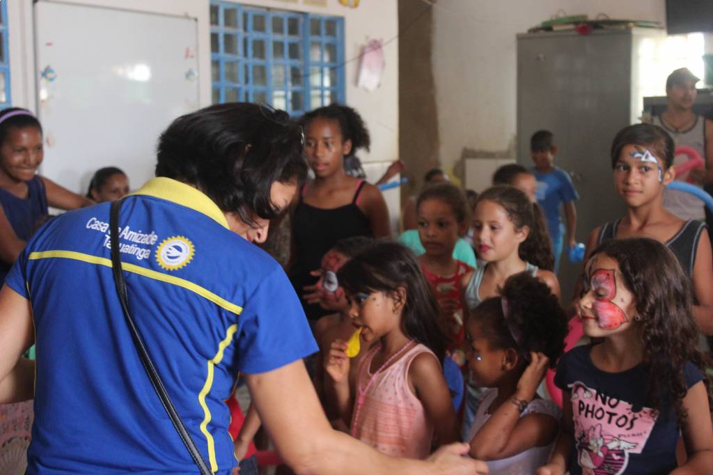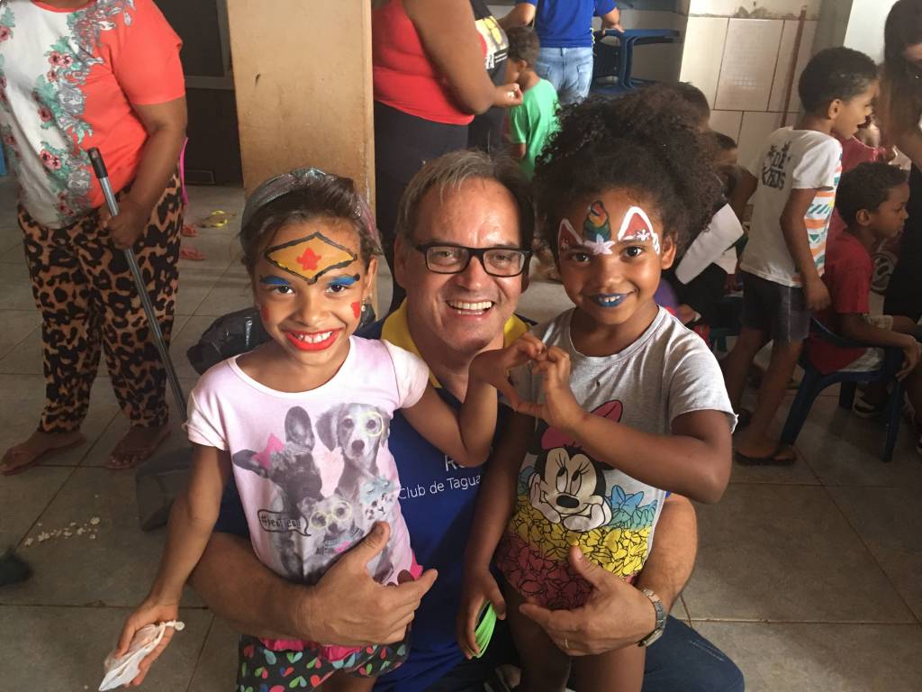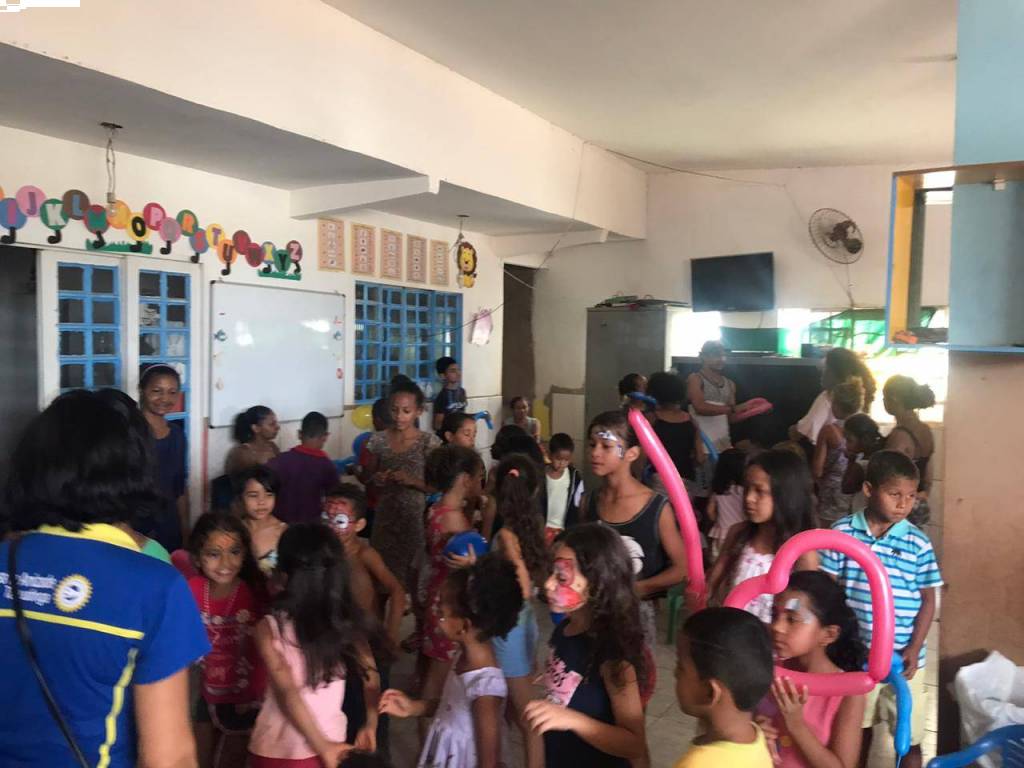 Neste dia da criança, a Casa da Amizade de Taguatinga, Rotary Club de Taguatinga, Rotary Kids e o Rotaract Club Taguatinga Nova Geração, ainda com a participação do Cp Elizio e Cpa Nina do RC Ave Branca, realizaram o dia da Criança na Creche da Tia Tata, localizada na Estrutural, bairro Santa Luzia. Está creche está em uma comunidade muito carente, conta hoje com 78 crianças e tem a frente a Tia Tata, as Damas distribuíram presentes, sanduíches com refrigerantes, pipoca, balinhas e muita pintura de Rosto. O Rotaract fez a diferença pintando as crianças e distribuindo balões e balinhas para todas elas, ao final foi distribuído picolés para a criançada e para todos do local. Picolé comercializado pelos cps António e Vanessa. Todos que estavam no local se divertiram e realizaram um lindo companheirismo. Parabéns a todas as Damas da CAT, vocês proporcionaram uma linda festa para as crianças e também para nós Rotaryanos .