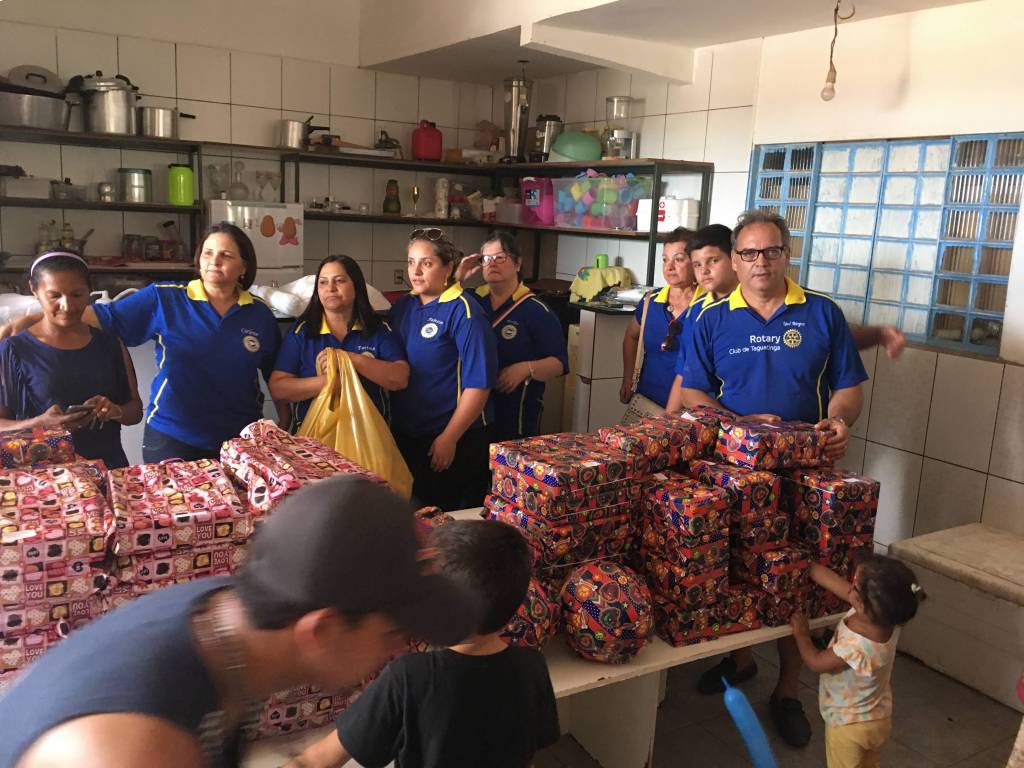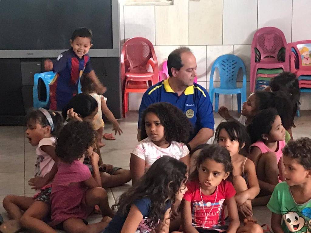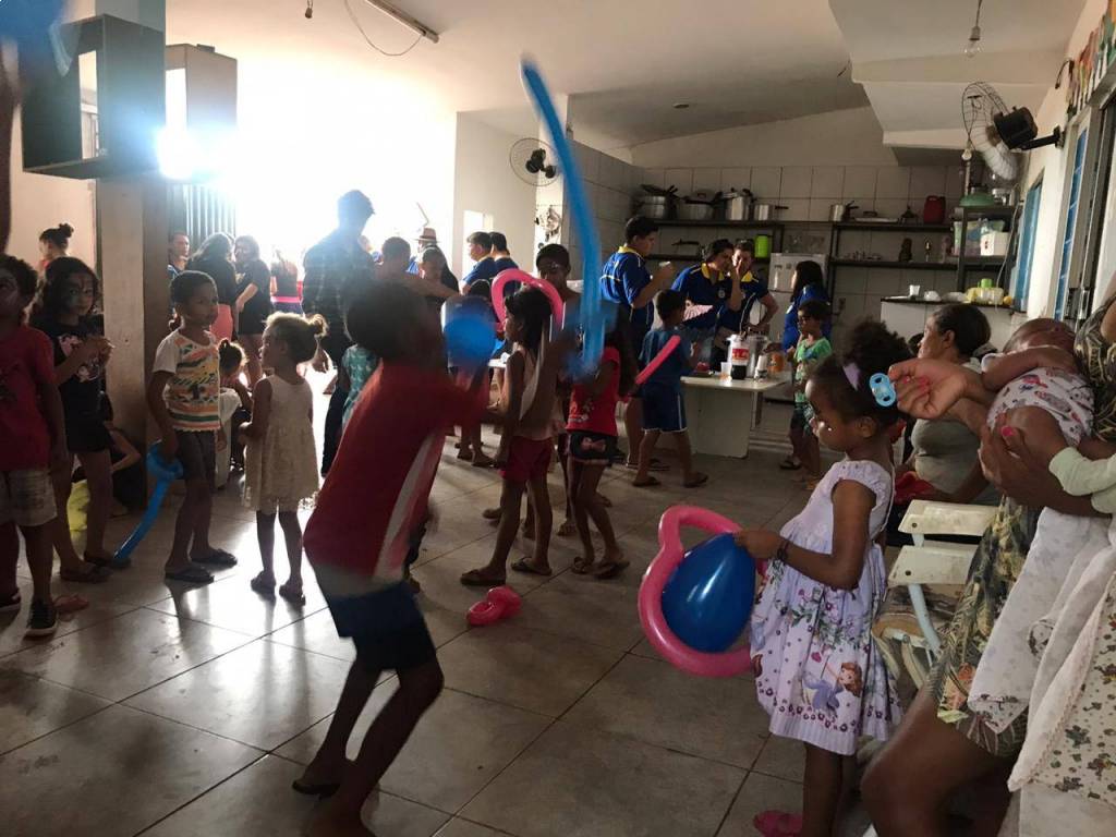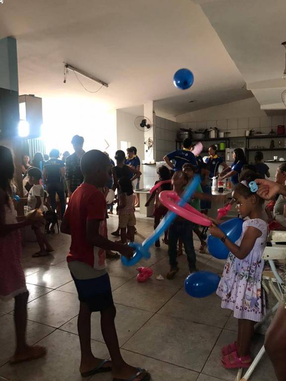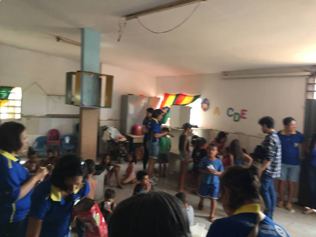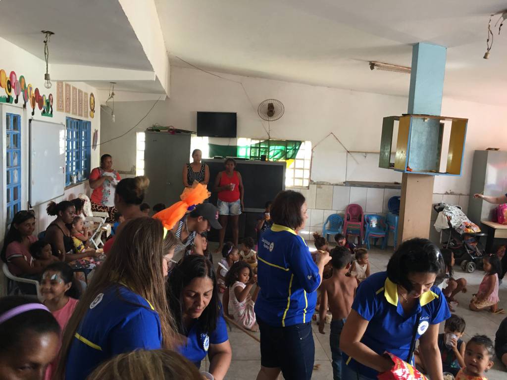 Neste dia da criança, a Casa da Amizade de Taguatinga, Rotary Club de Taguatinga, Rotary Kids e o Rotaract Club Taguatinga Nova Geração, ainda com a participação do Cp Elizio e Cpa Nina do RC Ave Branca, realizaram o dia da Criança na Creche da Tia Tata, localizada na Estrutural, bairro Santa Luzia. Está creche está em uma comunidade muito carente, conta hoje com 78 crianças e tem a frente a Tia Tata, as Damas distribuíram presentes, sanduíches com refrigerantes, pipoca, balinhas e muita pintura de Rosto. O Rotaract fez a diferença pintando as crianças e distribuindo balões e balinhas para todas elas, ao final foi distribuído picolés para a criançada e para todos do local. Picolé comercializado pelos cps António e Vanessa. Todos que estavam no local se divertiram e realizaram um lindo companheirismo. Parabéns a todas as Damas da CAT, vocês proporcionaram uma linda festa para as crianças e também para nós Rotaryanos .