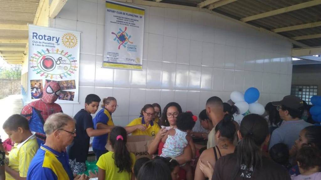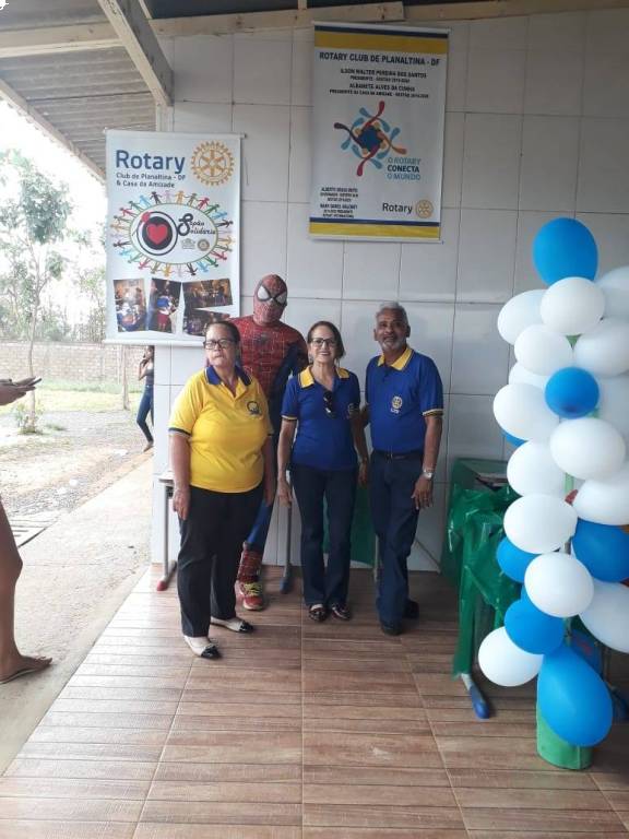 O Rotary Club de Planaltina realizou no último dia 12 uma festa em comemoração ao Dia das Crianças no Centro Educacional 07, que fica localizado no Bairro Nossa Senhora de Fátima, Planaltina - DF. Aproximadamente 150 crianças participaram da festa que contou com concurso de música, distribuição de brinquedos, sorteio de brindes, pula pula e lanche.