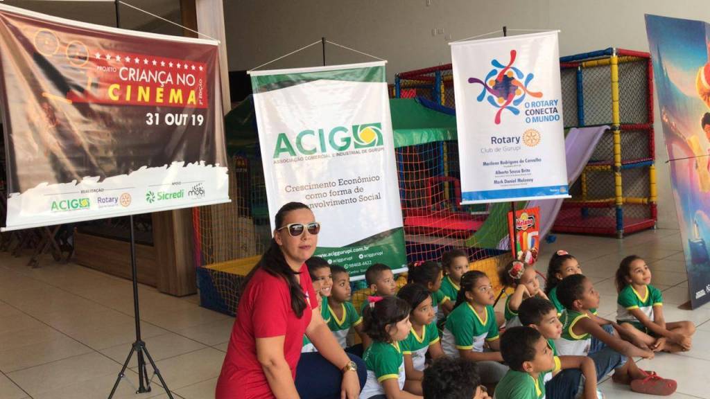 A ACIG e o Rotary Club de Gurupi realizaram no dia 31 de outubro a terceira edição do projeto Criança no Cinema. A ação busca dar oportunidade às crianças da rede municipal de ensino a experiência de conviver e conhecer o universo mágico do Cinema. Nesse ano as Entidades em parceria com a Escola Municipal José Pereira da Cruz, atendeu a 260 crianças.