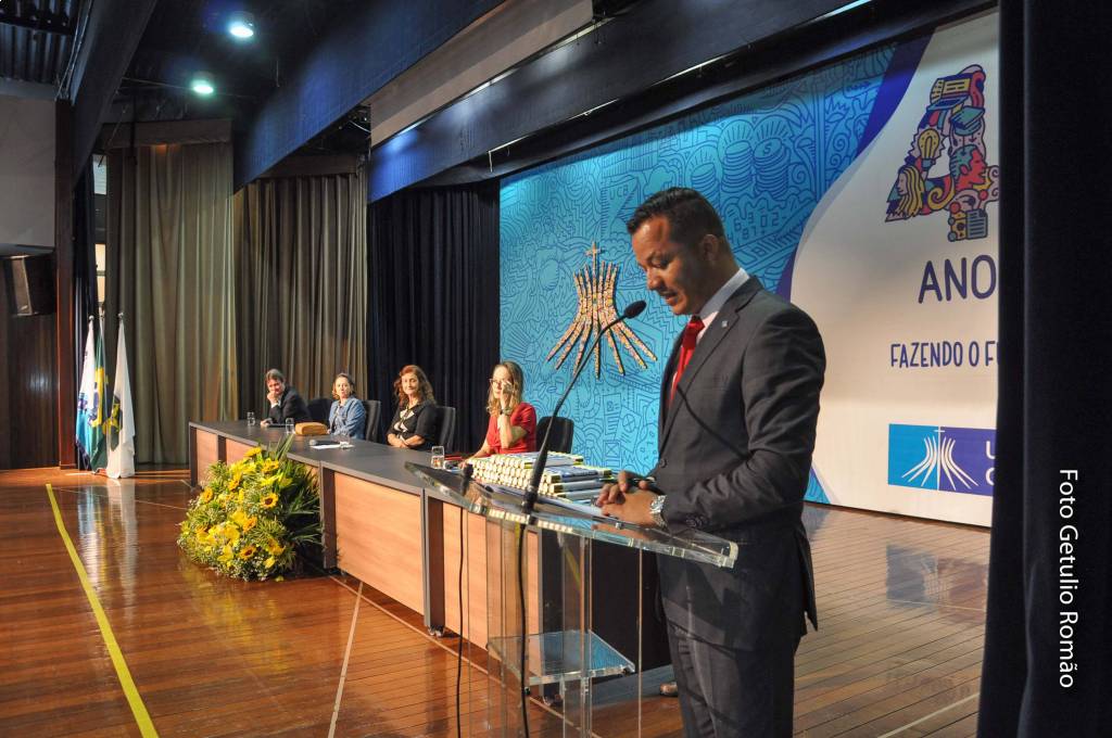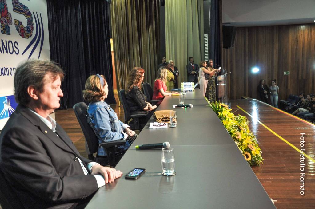 A mesa principal foi formada Dra. Anelise Pereira, diretora da escola de Educação, Demetrius Galinos Contoyannis, representante do governador do Distrito 4530 de Rotary Club, Marta Contoyannis, representando as Casas da Amizade, Professora Mestre Carla Cristie de França Silva, coordenadora do Projeto Alfabetização Cidadã.
