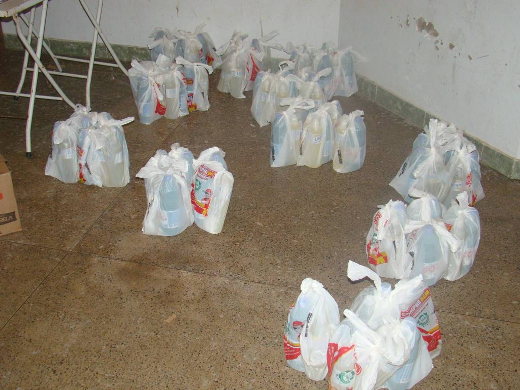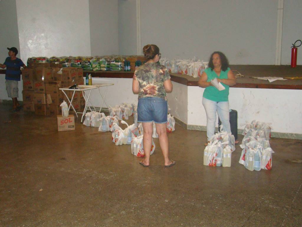Além dos kits com materiais de limpeza, foram distribuídas 68 cestas básicas a famílias cadastradas junto à Secretaria Municipal de Ação Social como estando em situação de vulnerabilidade socioeconômica. Destas, 15 foram adquiridas pelo Rotary Club de Campos Belos, 40 foram doadas pelo Supermercado Compre Bem, 05 pelo Supermercado Mais Vó, 02 pela Cerealista Só Grãos e 06 por pessoas físicas.