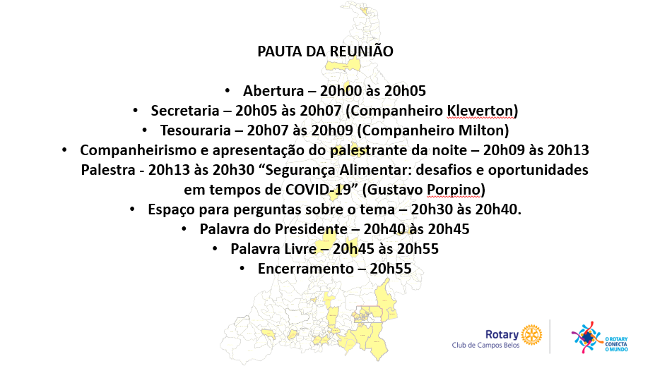 O Rotary Club de Campos Belos convida você a participar de nossa II Reunião Virtual neste ano rotário 2019/2020. Considerando o período de isolamento social, esta é uma forma de continuarmos trabalhando em prol do bem ao próximo.