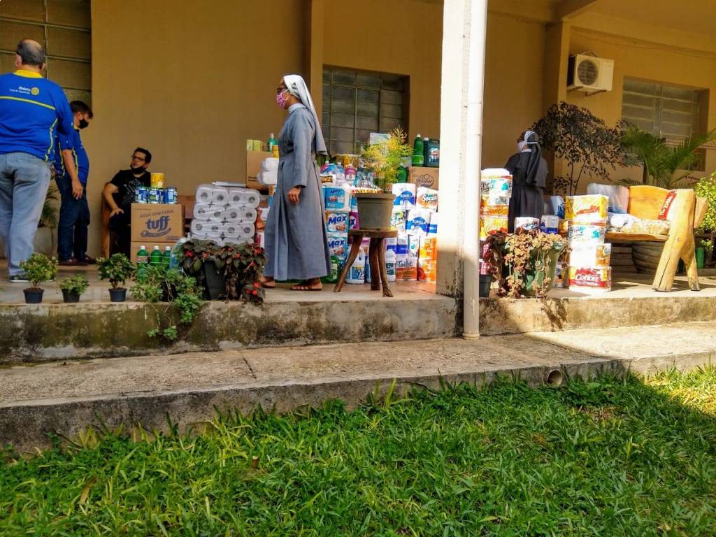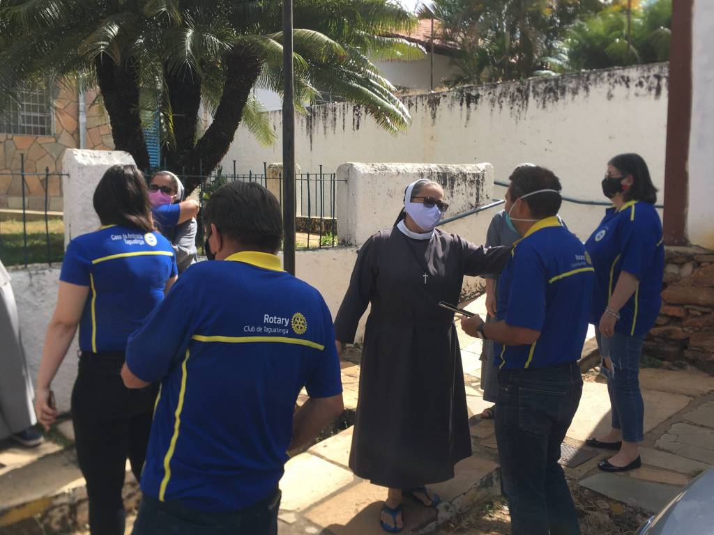 Domingo 28 de junho, um dia para ficarmos com a família e descansarmos, NADA DISSO, nossa aptidão para servir ao próximo vai além disso. As damas da Casa da Amizade e os companheiros do Rotary de Taguatinga resolveram se juntar e com a ajuda dos amigos do Rotary, levantaram doações para ajudar ao Lar de Idosos da Aldeia da Paz em Pirenópolis. Representando a todos Rotarianos, Damas e Amigos, os Casais Nesildo e Leila, Carlinhos e Fatima, André e Érika e a nossa Companheira Neilane carregaram os carros com as doações conseguidas e partiram para este SERVIR. Saíram dos seus lares e foram com muita segurança ajudar ao Lar dos Idosos em Pirenópolis. Os três carros foram lotados de muitas doações, graças principalmente aos Amigos do Rotary que atenderam a solicitação de todos nós. Fizemos doações de Luvas descartáveis, Toucas, Máscaras Faciais, Leite em pó, Papel Toalha, Papel Higiênico, água sanitária, Álcool em Gel, Flocos de milho, Frango, sabão, sabonete líquido, alguns alimentos e dinheiro em espécie (doação as sete irmãs), este dinheiro servirá para as irmãs comprarem produtos de uso pessoal, pois as mesmas vivem de doações e não recebem nada para tomarem conta dos idosos. O Lar dos idosos consta hoje com 21 idosas e 7 irmãs para tomar conta de uma área de mais de 40 mil metros. Nós Rotarianos e Damas da Casa da amizade queremos agradecer aos Amigos do Rotary, vocês fizeram acontecer nesta doação.
