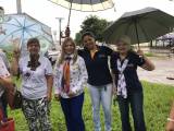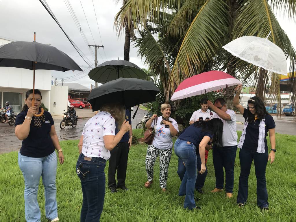 O dia começou com uma tradição em Rotary, que é receber visitantes em Marcos Rotários da cidade. Marcos Rotários devem ser instalados em local público de grande visibilidade como se estivesse saudando quem vem de viagem. Receber nossos visitantes no Marco Rotário é uma ação obrigatória em Rotary. Os companheiros do RC Araguaína, mesmo embaixo de uma insistente garoa, receberam os companheiros Alberto e Antonia como se eles estivessem chegando de longa viagem.
