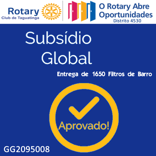 O Rotary Club de Taguatinga recebeu nesta semana com muita alegria a notícia de que o seu projeto de subsídio global que prevê a entrega de mais de 1.650 filtros para famílias de catadores de material reciclável que moram na comunidade Santa Luzia da Cidade estrutural foi aprovado pela Fundação Rotária do Rotary Internacional.