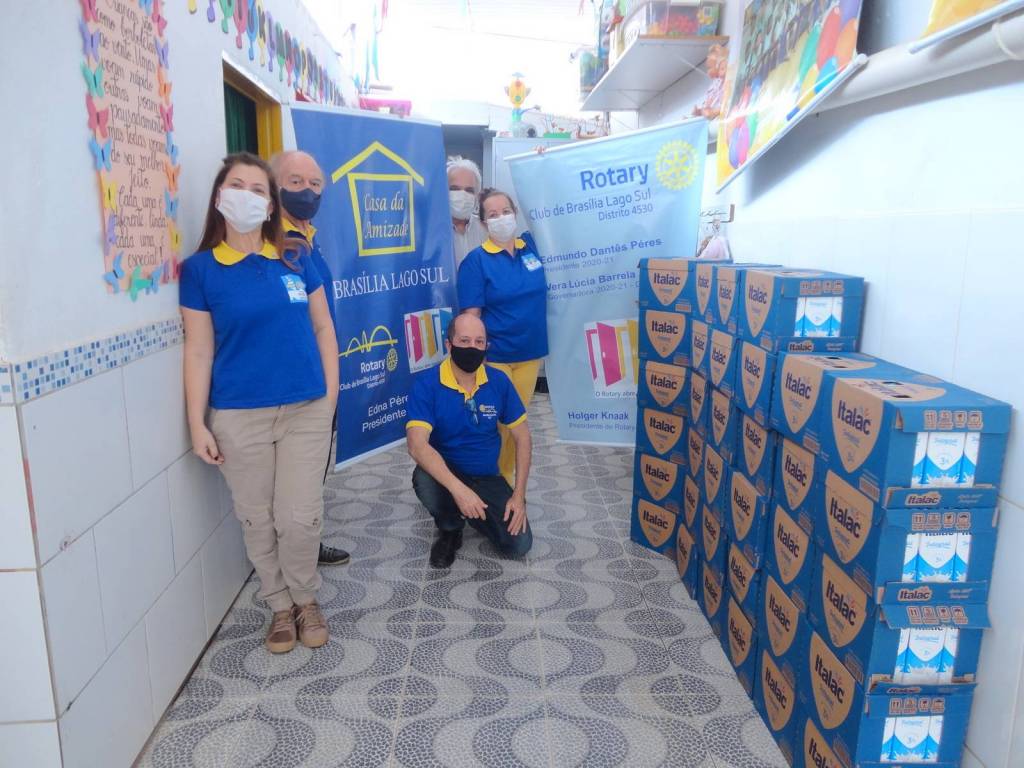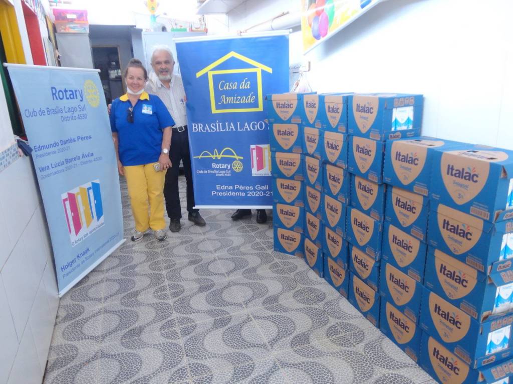 Rotary Club Brasília Lago Sul sob a presidência do companheiro Edmundo Peres, doou 408 litros de leite, e a Casa da Amizade doou uma caixa com várias bonecas, no dia 3/8 às 12:00 hs, para a Creche São Francisco na Estrutrural. O material foi entregue à Antonia coordenadora pedagógica.